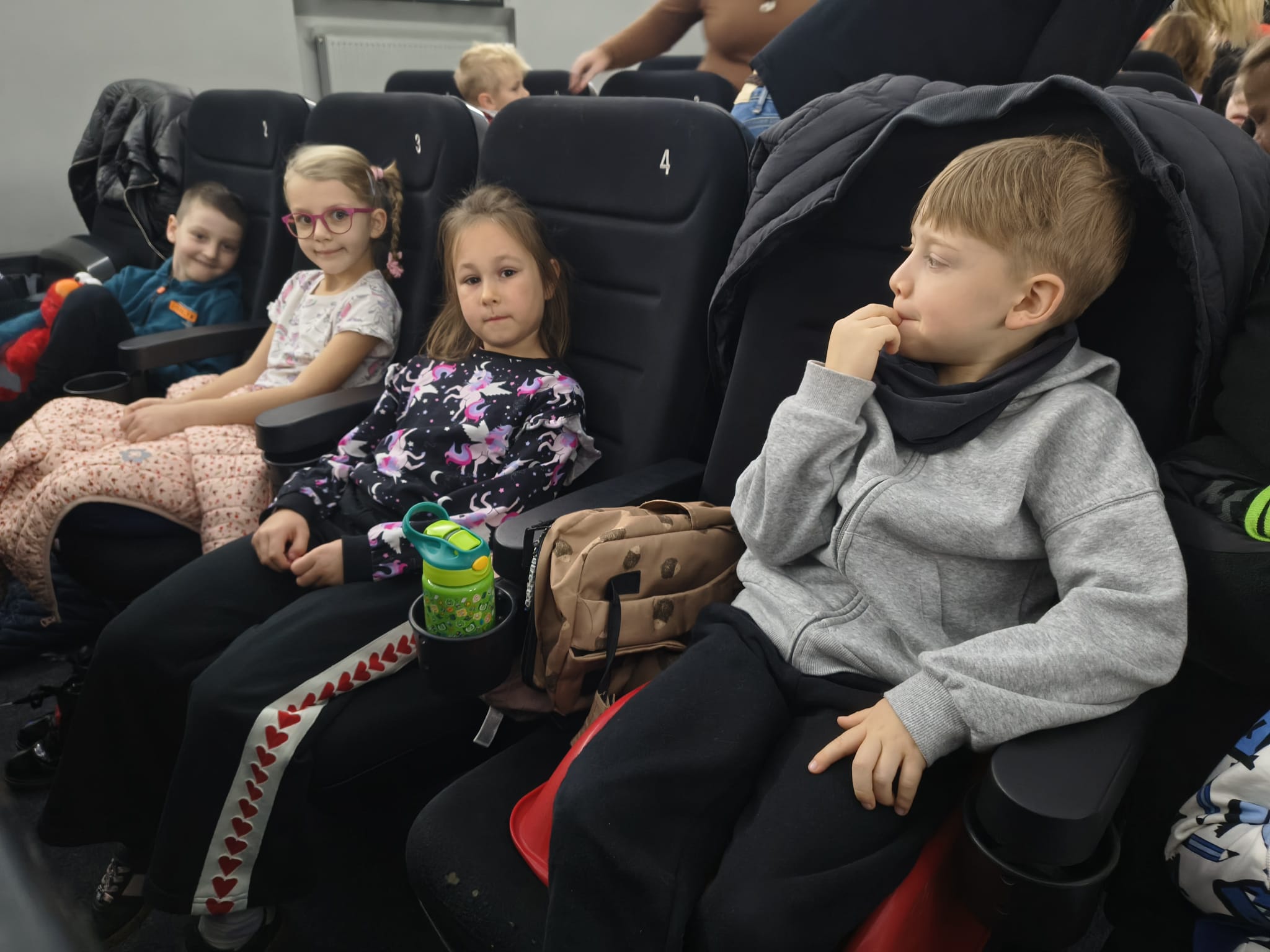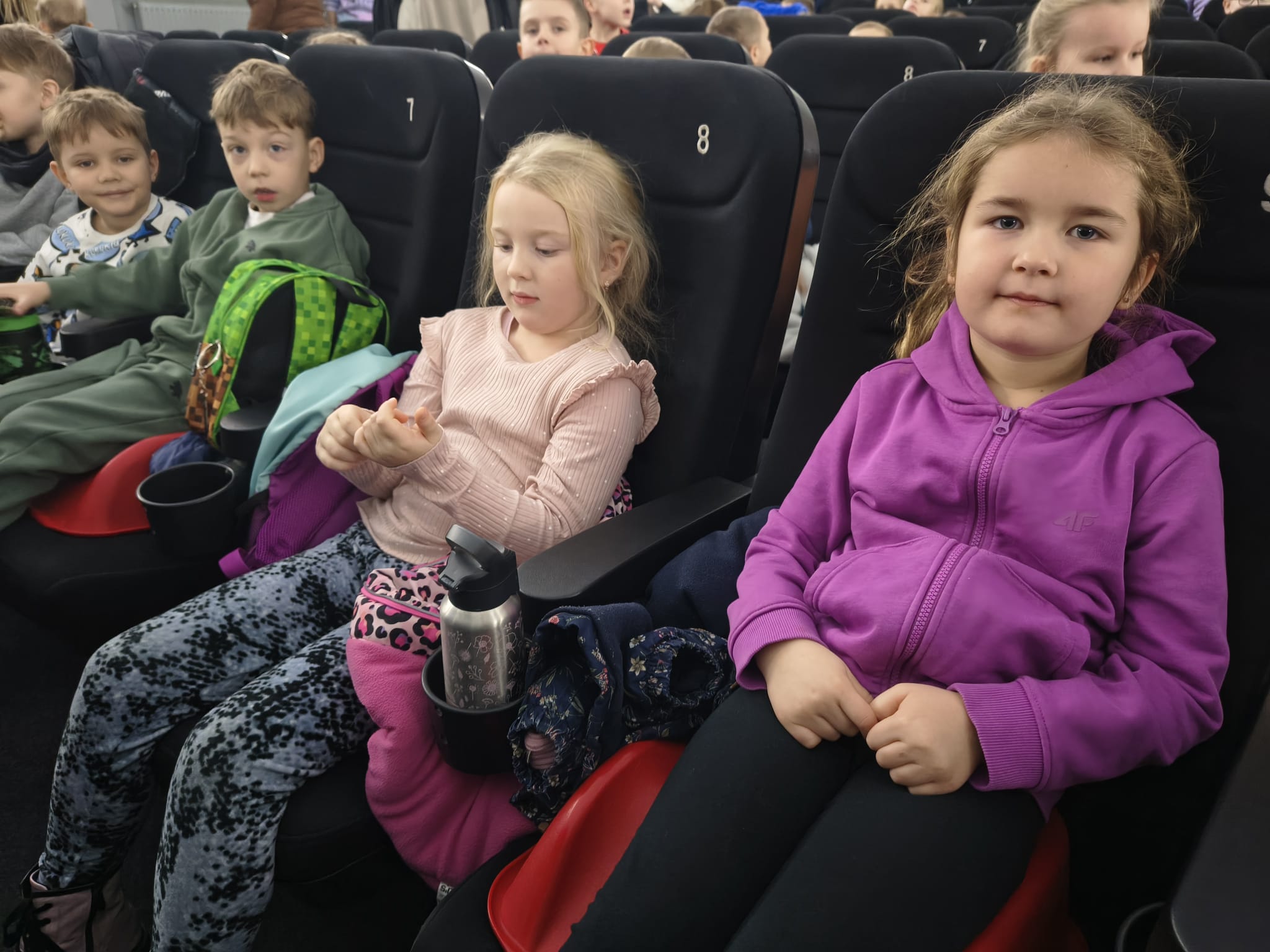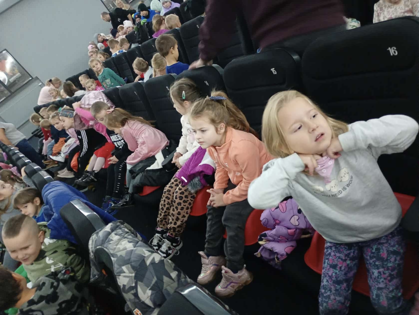 W wyjeździe wzięły udział prawie wszystkie nasze przedszkolne grupy: Liski, Delfinki, Koliberki, Żyrafy i Kangury. Dzieci z zapartym tchem śledziły czarodziejskie przygody bohaterów, śmiały się, klaskały i z radością uczestniczyły w zaczarowanej atmosferze kina.