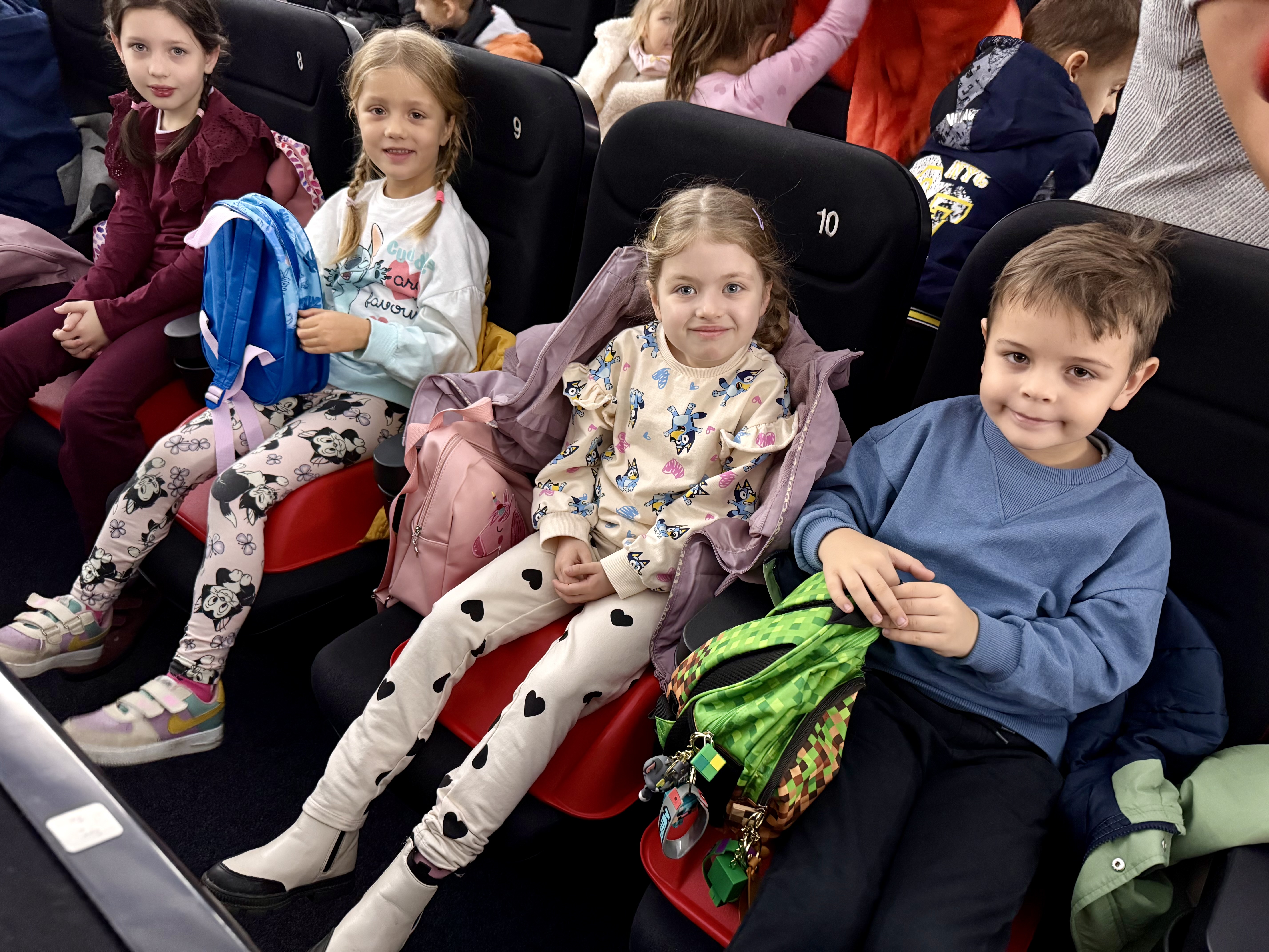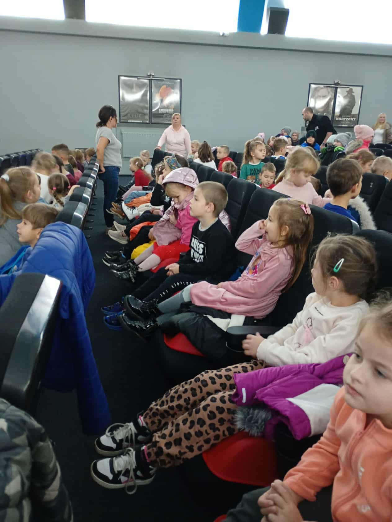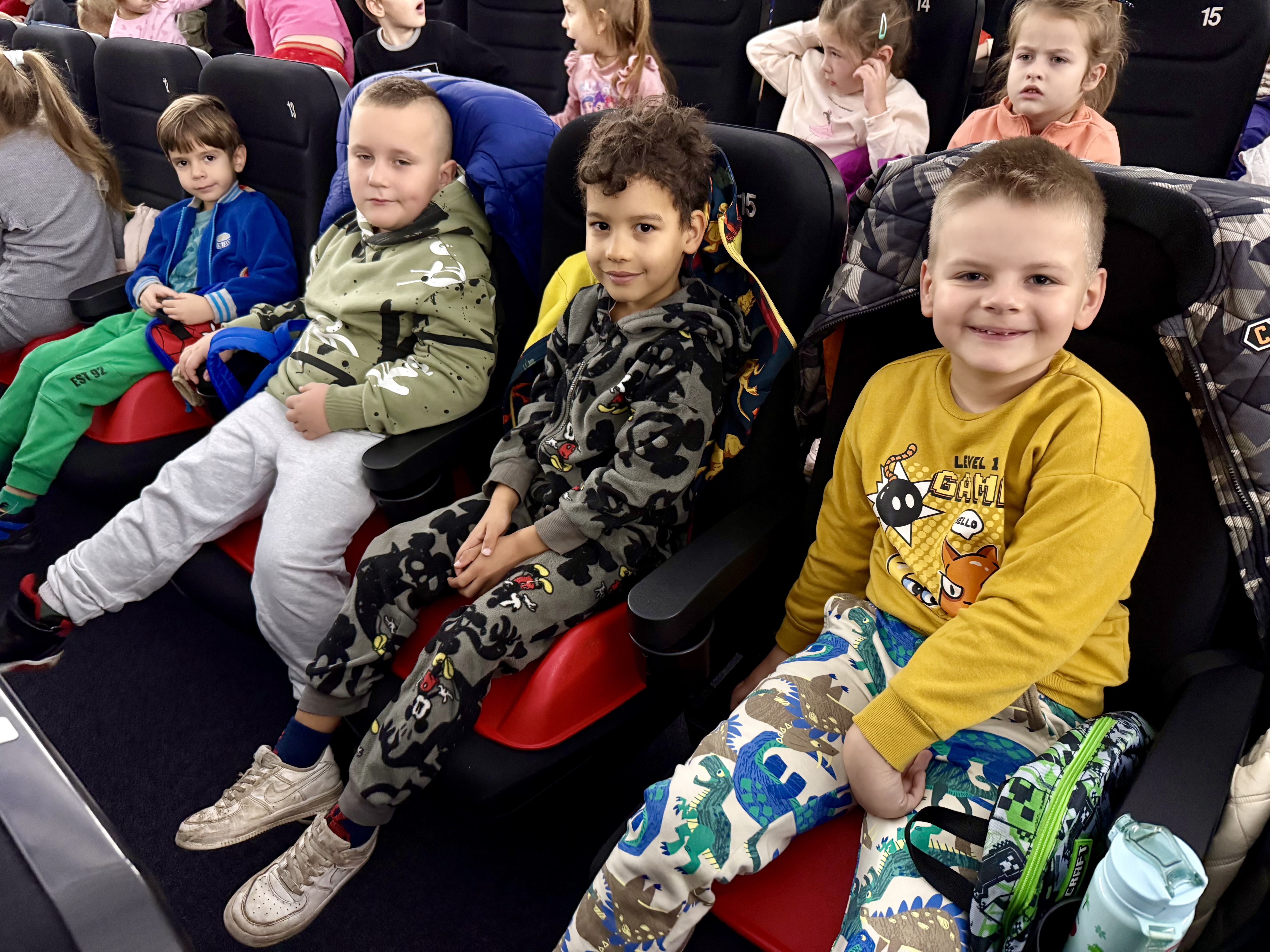 W wyjeździe wzięły udział prawie wszystkie nasze przedszkolne grupy: Liski, Delfinki, Koliberki, Żyrafy i Kangury. Dzieci z zapartym tchem śledziły czarodziejskie przygody bohaterów, śmiały się, klaskały i z radością uczestniczyły w zaczarowanej atmosferze kina.