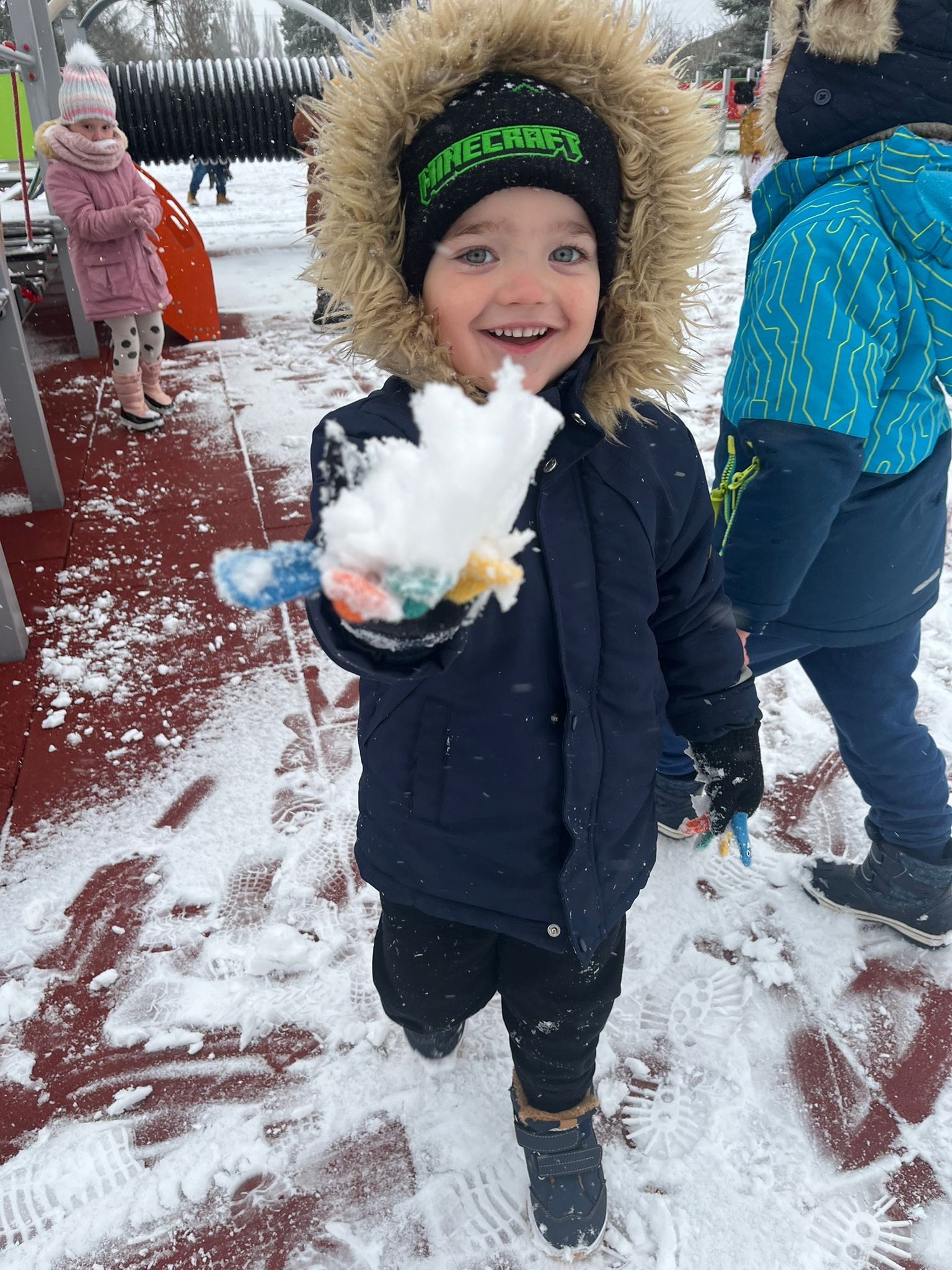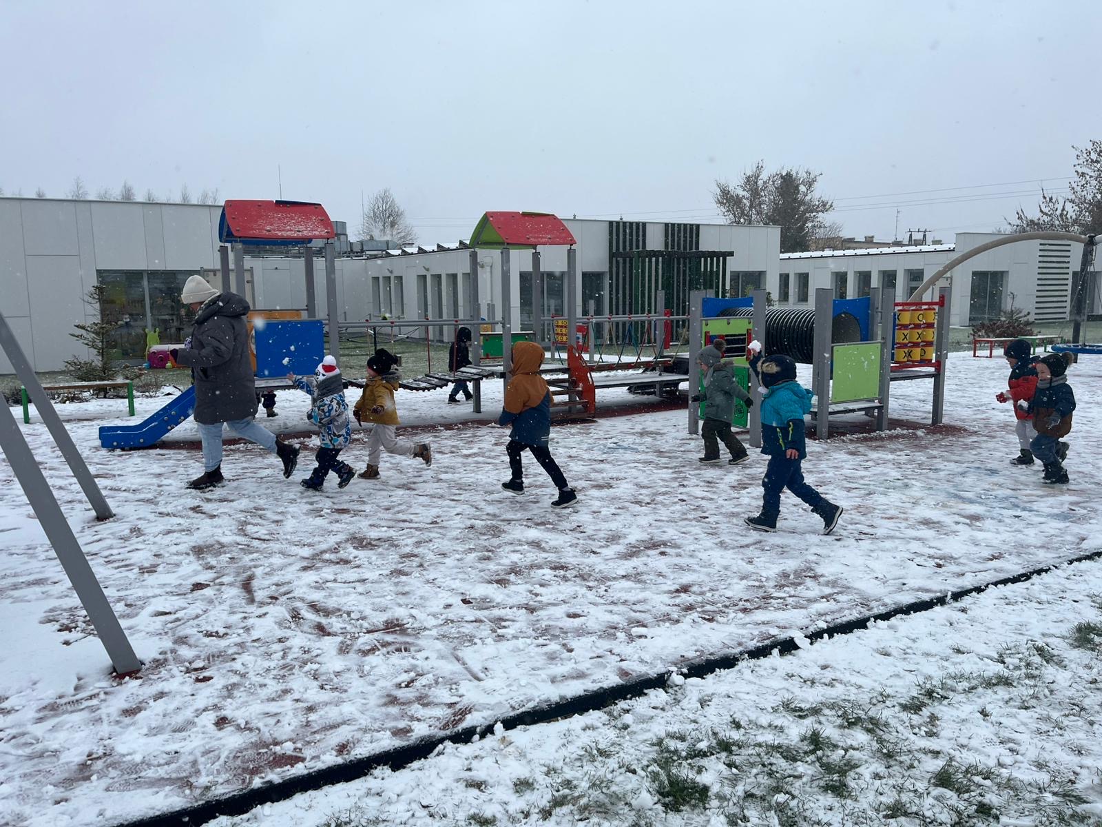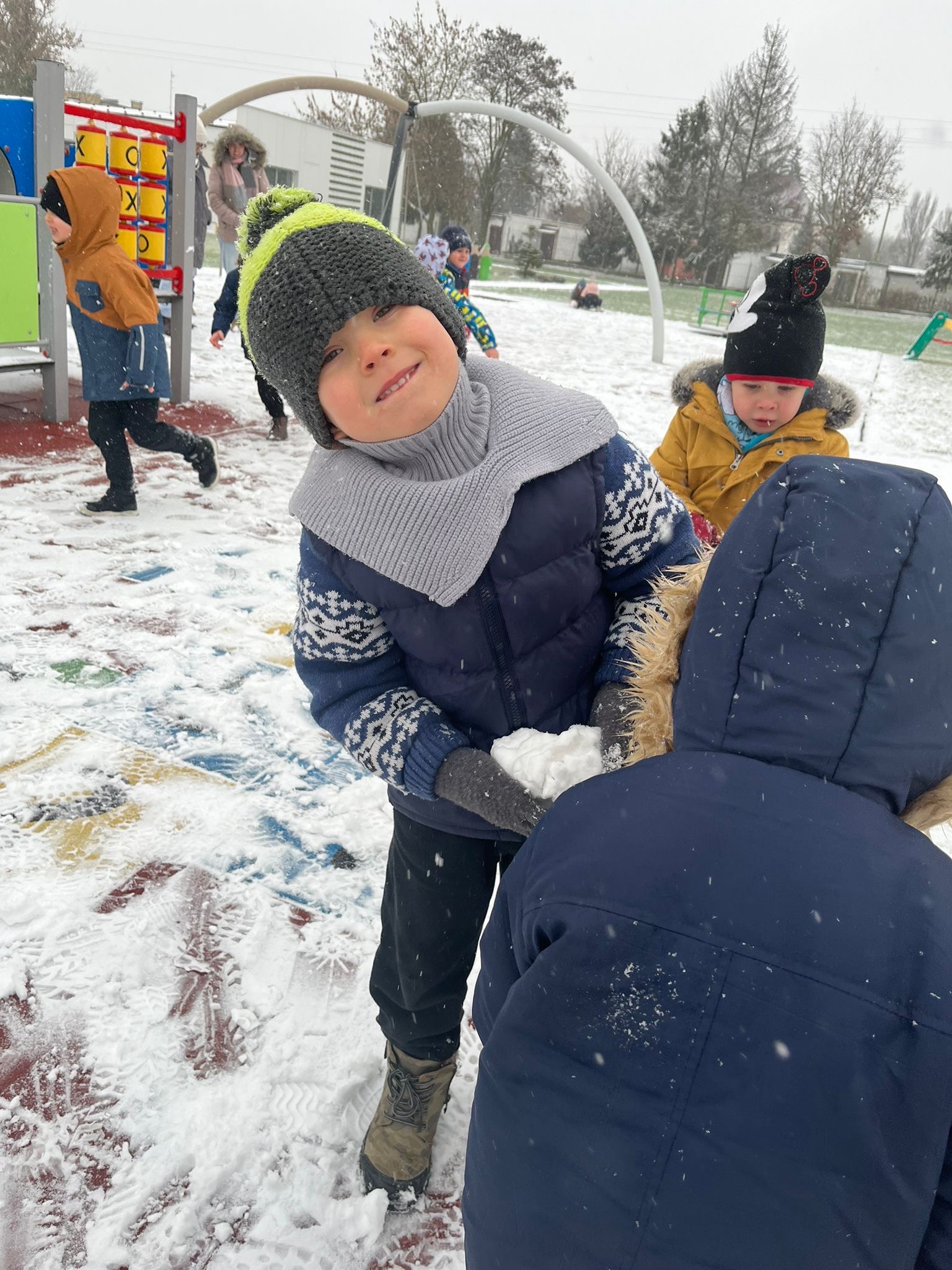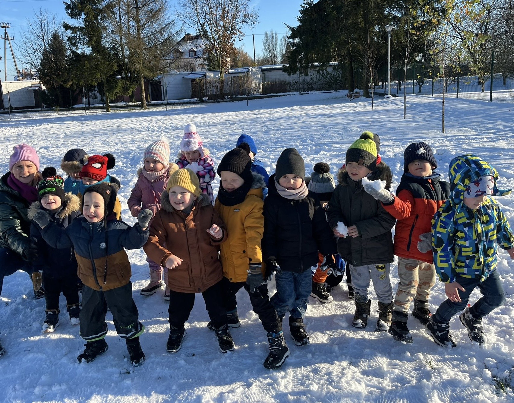 W dniach 26–28 listopada do naszego przedszkola zawitała prawdziwa zima. W tym czasie dzieci z grupy „Liski" z ogromnym entuzjazmem korzystały z pierwszego śniegu. Maluchy robiły śnieżne aniołki, lepiły bałwana, rzucały śnieżkami i wspólnie odkrywały uroki zimowych zabaw.