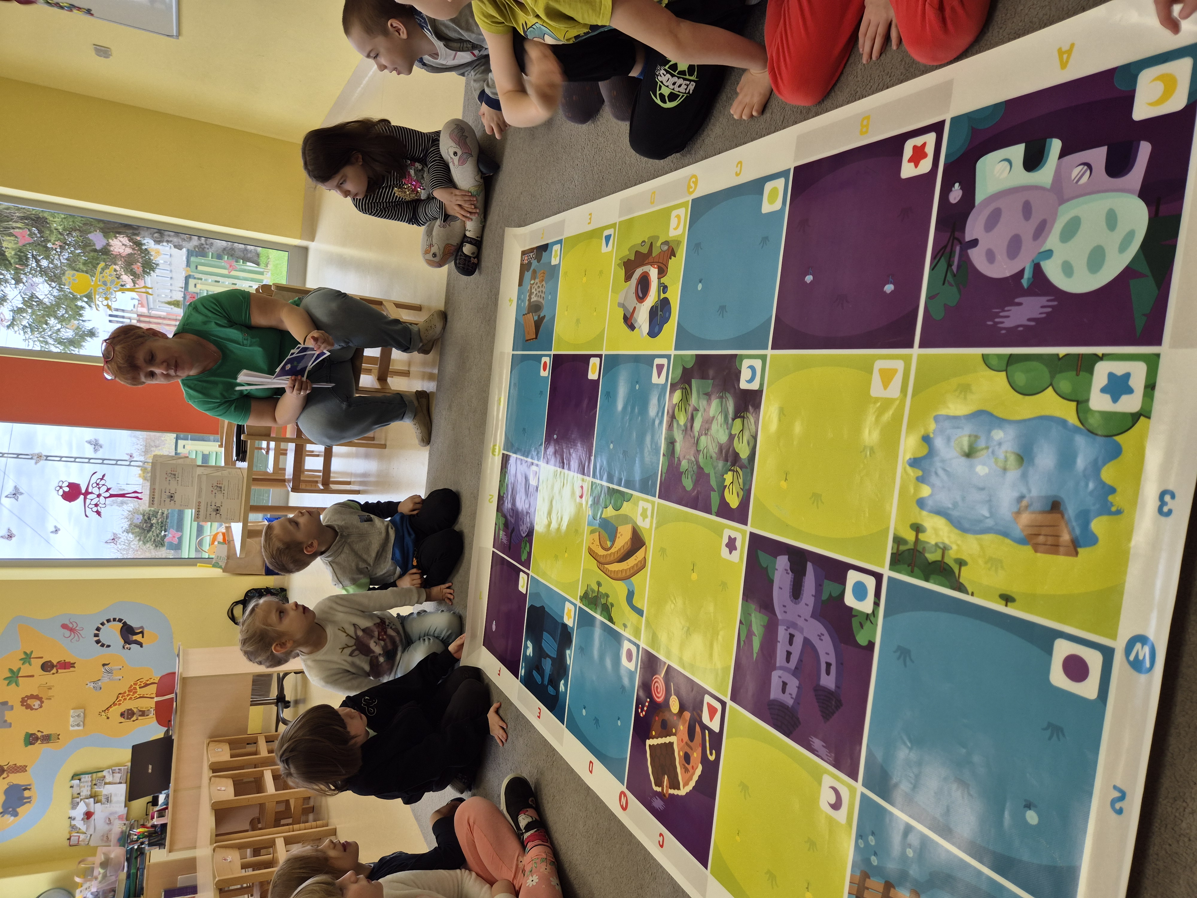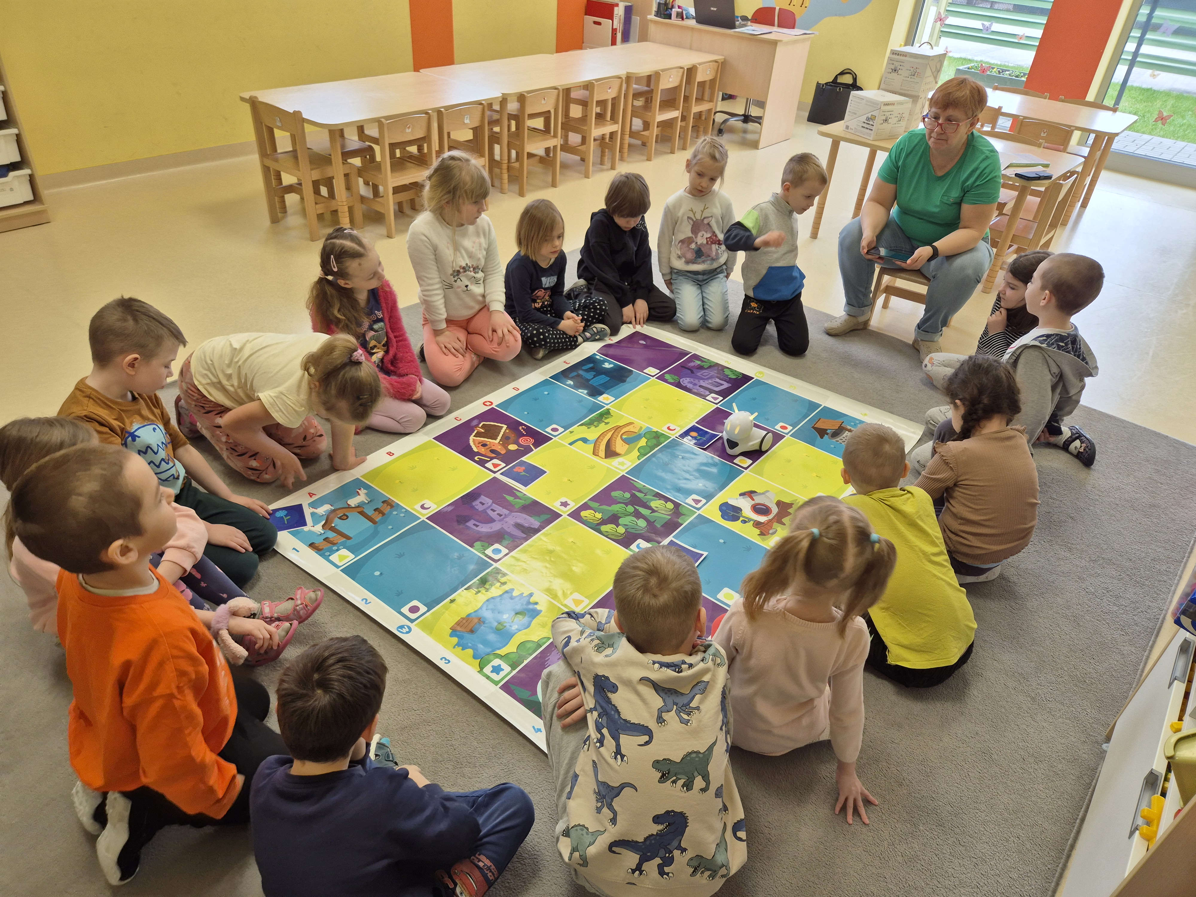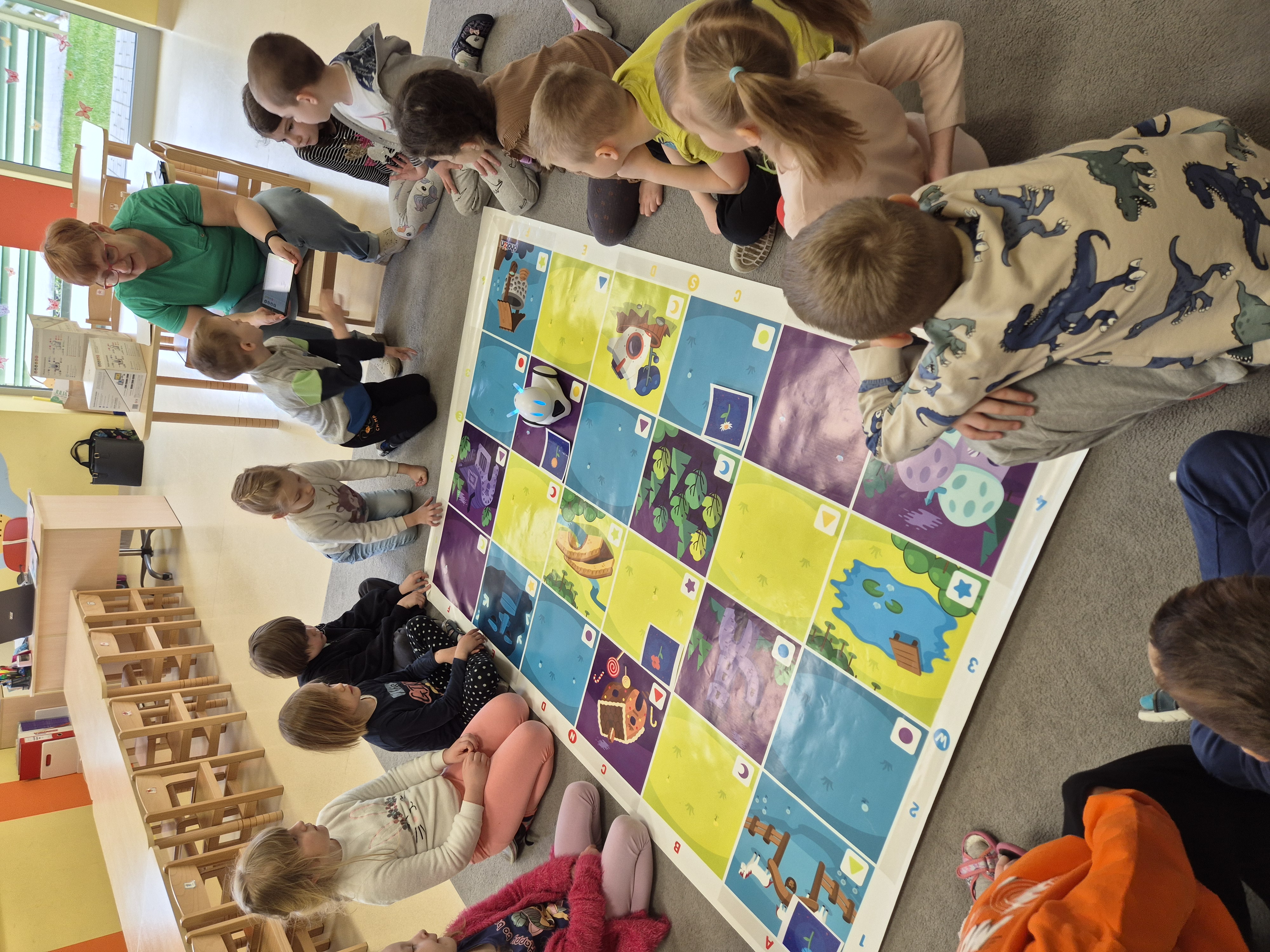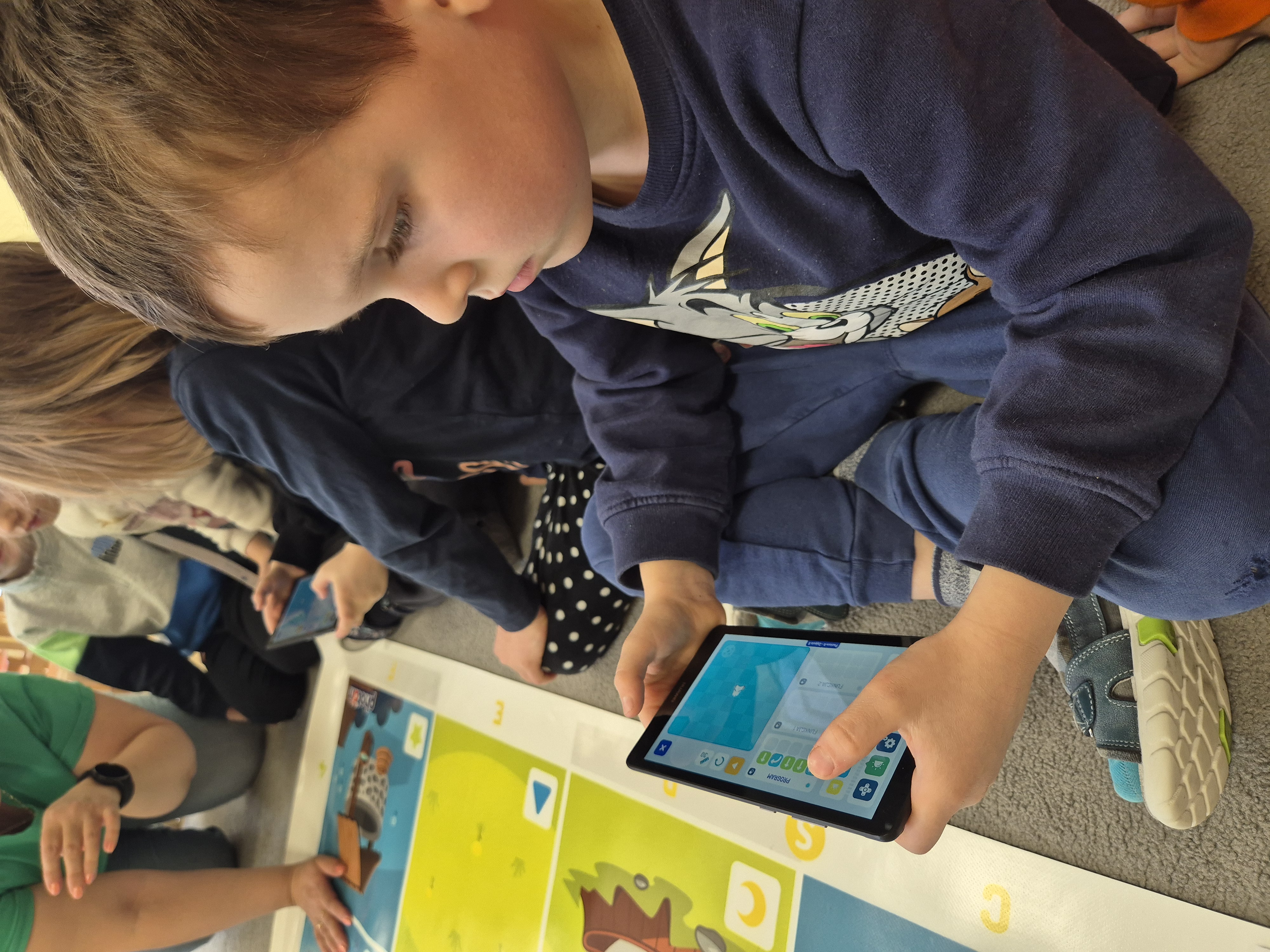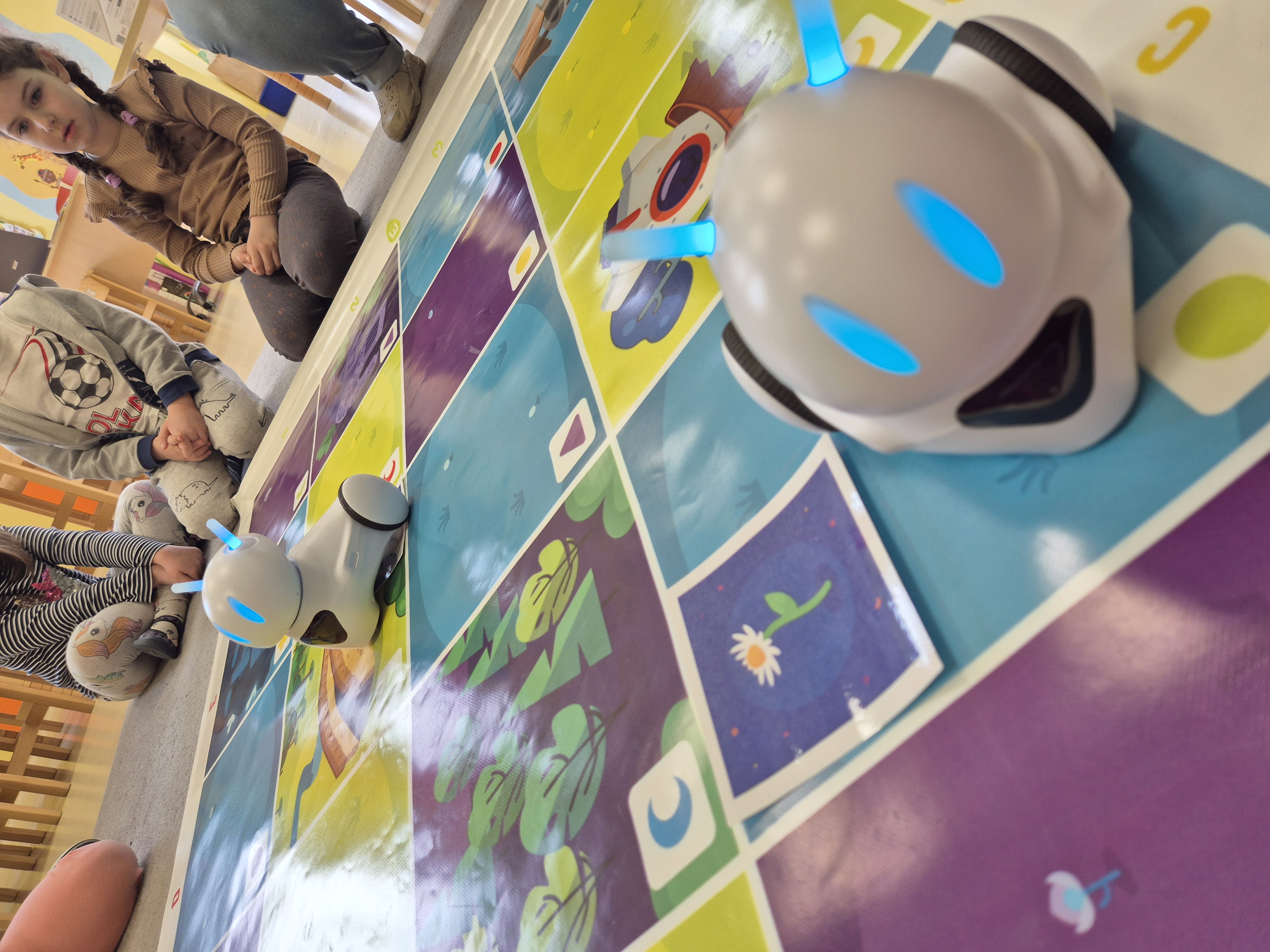 Dnia 9 kwietnia odwiedziła nas Pani Ewa Koniarska z Centrum Biblioteki i Kultury w Gminie Jeżewo. W grupie "Żyrafy" odbyły się wyjątkowe zajęcia z robotami - Photonami. Spotkanie rozpoczęło się od krótkiej pogadanki o kwiatach. Zadaniem dzieci było zaprogramowanie robota tak, aby przeszedł wiosenną trasę po kwiatach i "zbierał" napotkane kwiaty. Dzieci miały okazję poznać podstawy programowania, ucząc się w prosty i zabawny sposób, jak sterować robotami. Wspólna praca sprawiła dzieciom ogromną radość i pozwoliła rozwijać kreatywność oraz logiczne myślenie. Na zakończenie zajęć dzieci wręczyły Pani Ewie podziękowania, a w nagrodę otrzymały kolorowanki z wizerunkiem robota. Były to zajęcia pełne nauki i radości, które na długo zostaną w pamięci naszych przedszkolaków!