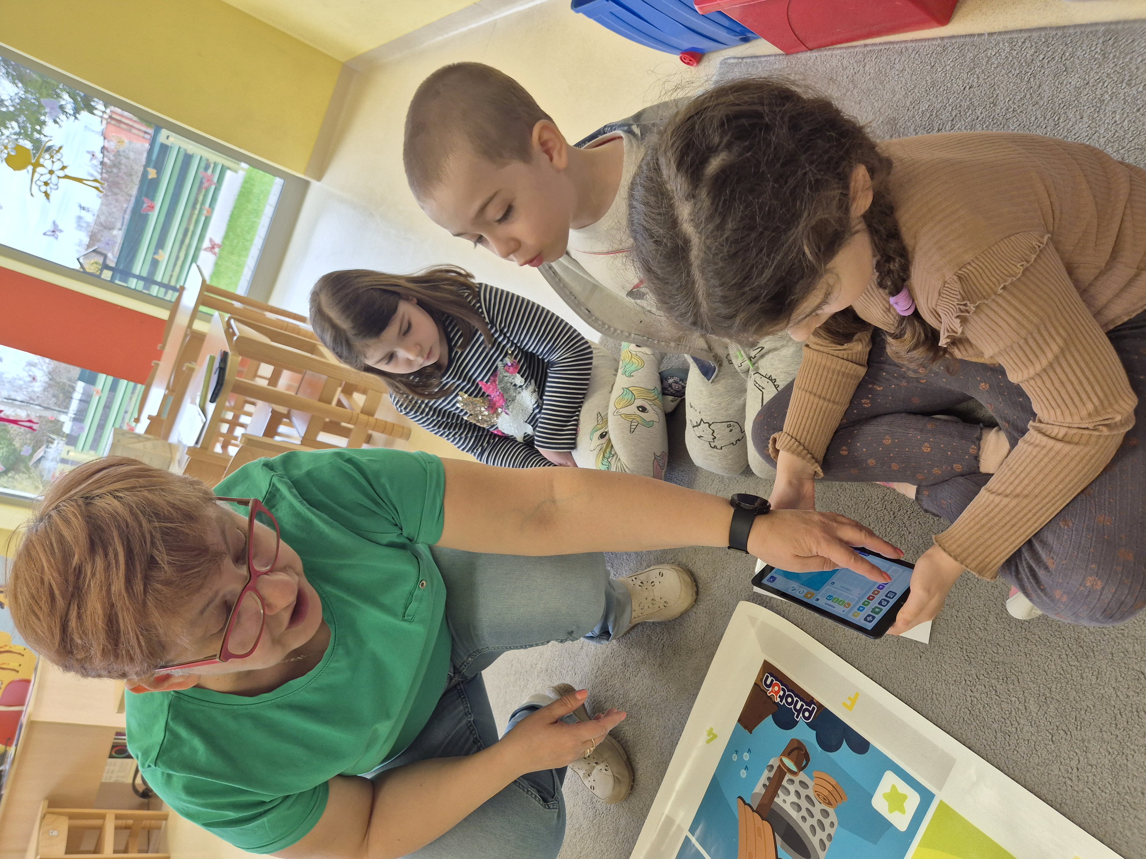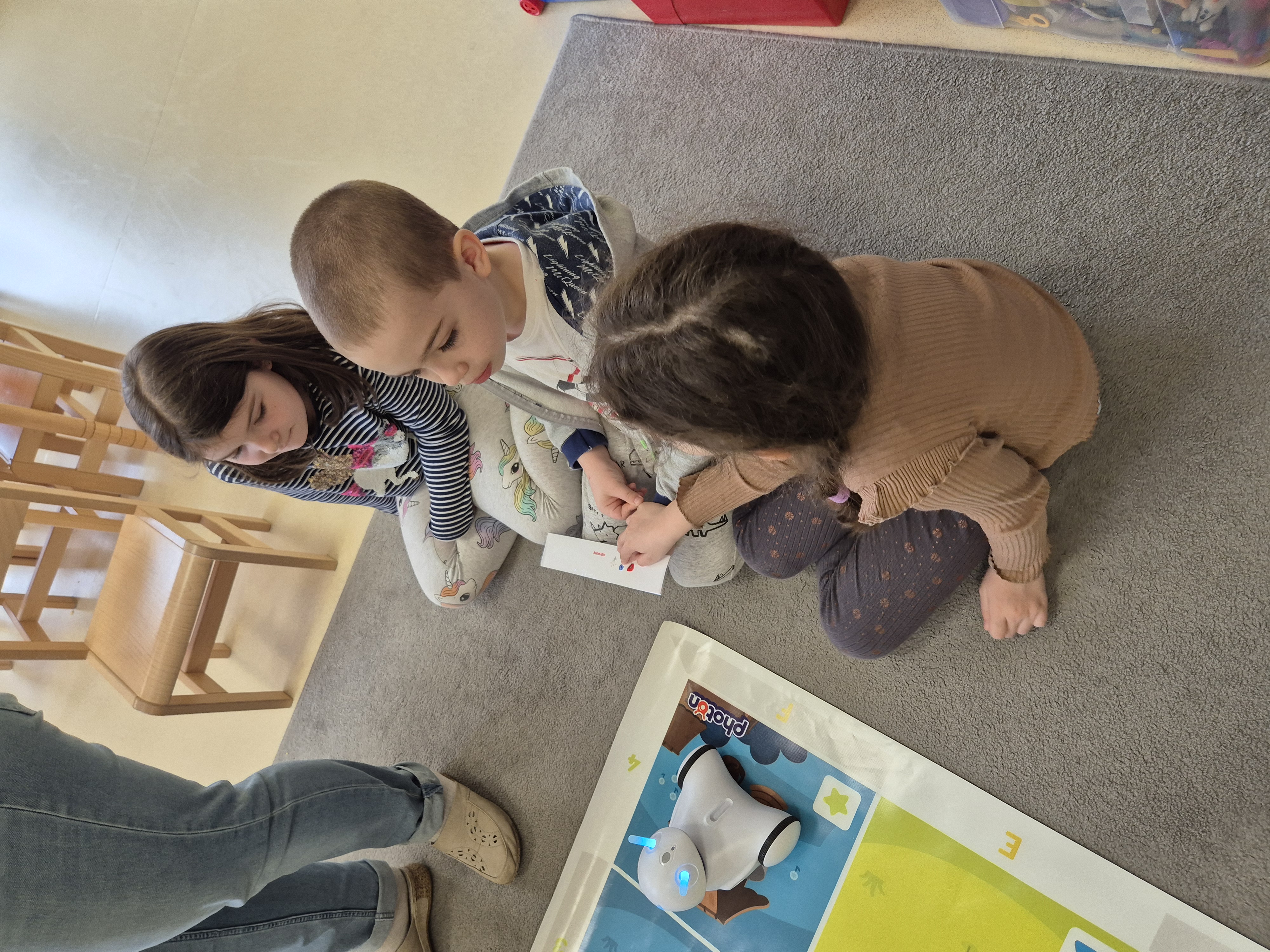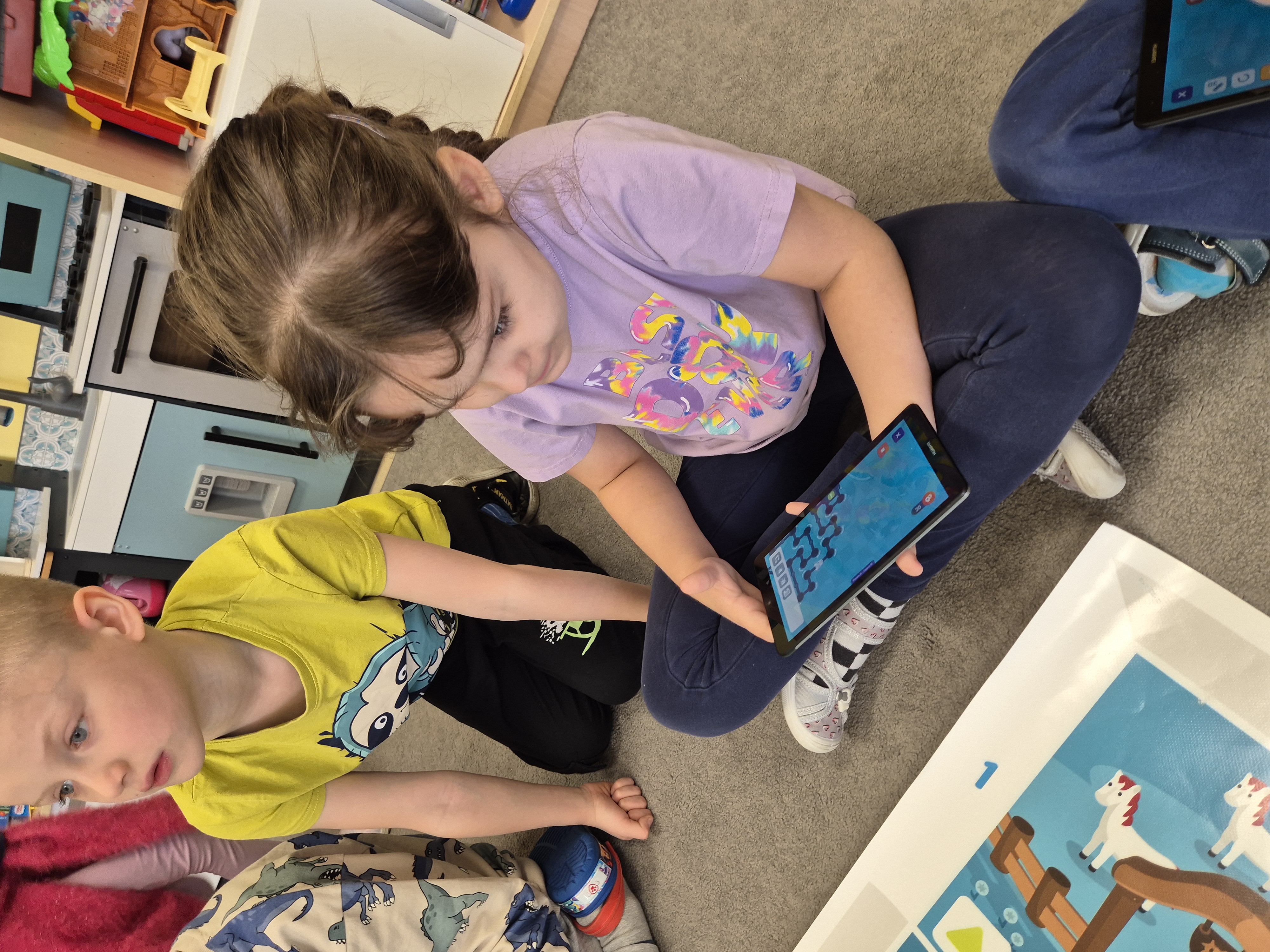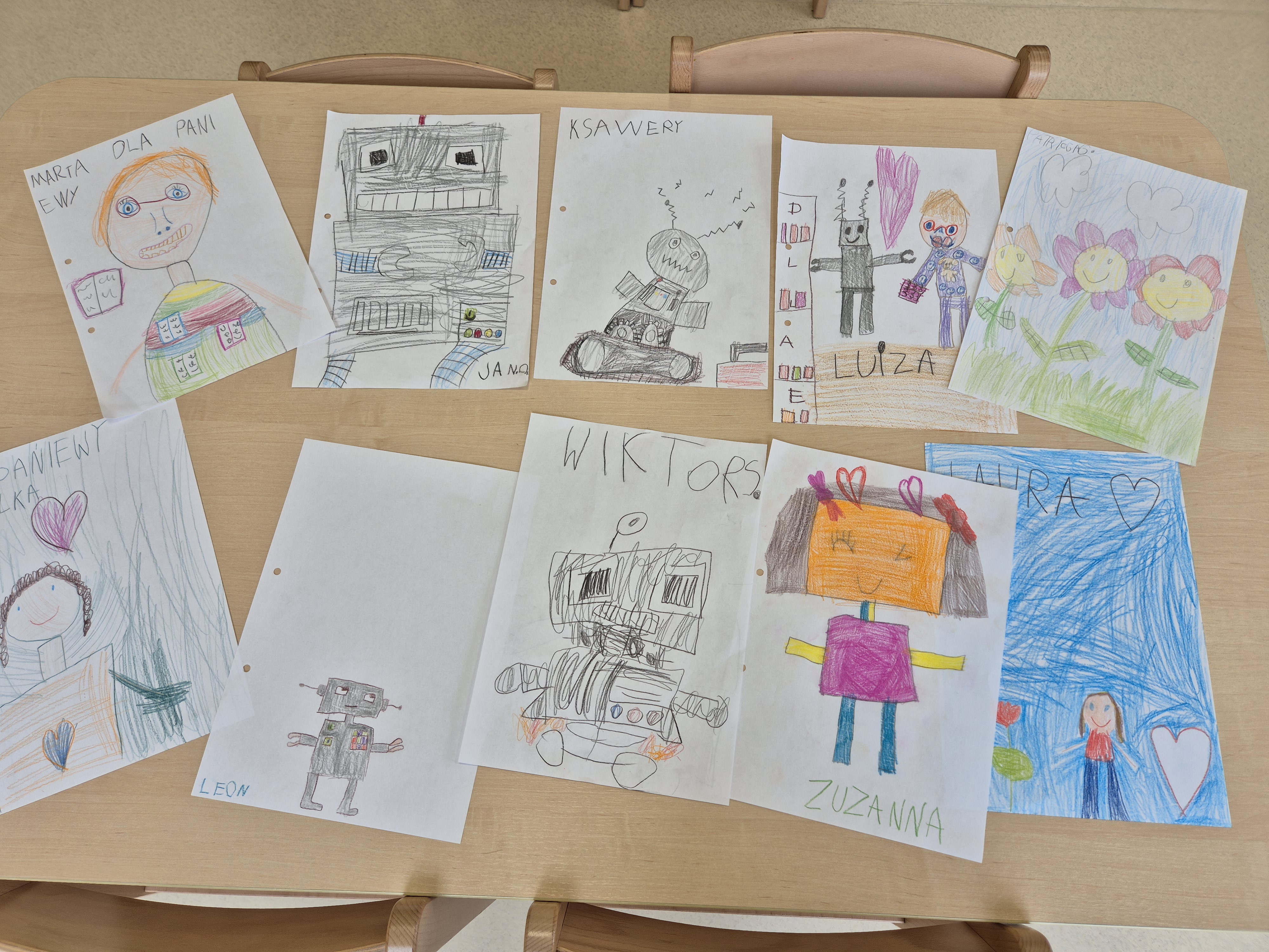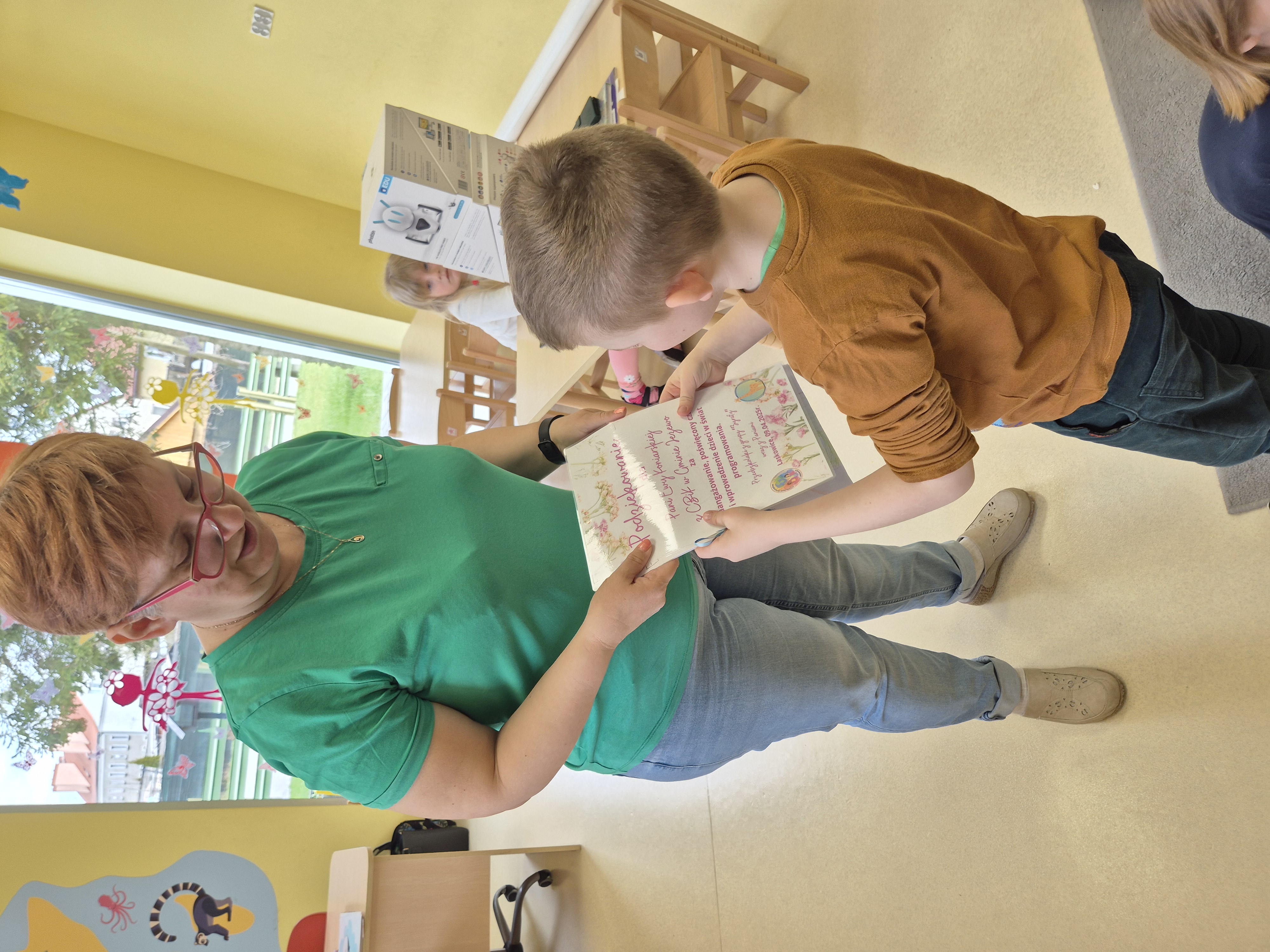 Dnia 9 kwietnia odwiedziła nas Pani Ewa Koniarska z Centrum Biblioteki i Kultury w Gminie Jeżewo. W grupie "Żyrafy" odbyły się wyjątkowe zajęcia z robotami - Photonami. Spotkanie rozpoczęło się od krótkiej pogadanki o kwiatach. Zadaniem dzieci było zaprogramowanie robota tak, aby przeszedł wiosenną trasę po kwiatach i "zbierał" napotkane kwiaty. Dzieci miały okazję poznać podstawy programowania, ucząc się w prosty i zabawny sposób, jak sterować robotami. Wspólna praca sprawiła dzieciom ogromną radość i pozwoliła rozwijać kreatywność oraz logiczne myślenie. Na zakończenie zajęć dzieci wręczyły Pani Ewie podziękowania, a w nagrodę otrzymały kolorowanki z wizerunkiem robota. Były to zajęcia pełne nauki i radości, które na długo zostaną w pamięci naszych przedszkolaków!